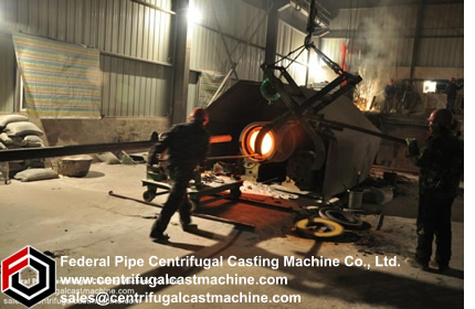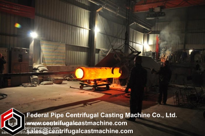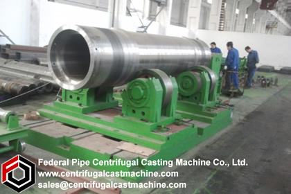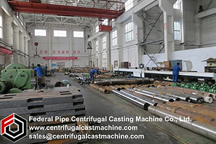 The horizontal type centrifugal casting machines are used to produce the duplexed mill roll shell/outer layer. The roll casting process divided into two steps. The first step is the horizontal casting of roll shell/outer layer, the second step is the vertical static casting of roll core. The two steps are proceeded continuously in sequence in two separated casting sites. After the static casting is finished, the newly casted roll will be positioned in the ground pit for curing for 24 hours in a certain degreed temperature. Comparing with vertical type centrifugal casting machine, the horizontal type roll centrifugal casting machine’s cost is cheap, investment is low and more flexible, but its mechanization degree is low, thus the labor cost is on high side because the two casting process (centrifugal casting and static casting) need to be done by two separated machines in two different casting sites.